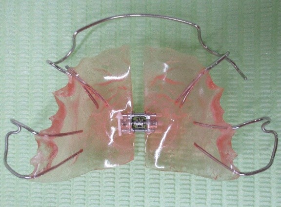 取り外し式の装置を一定の時間装着します。さまざまなタイプの床矯正装置があり、子どものお口の状態によって使い分けます。